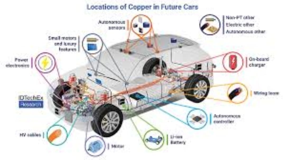 एक सामान्य पेट्रोल या डीजल कार के मुकाबले इलेक्ट्रिक वाहन में कई गुना ज्यादा कॉपर लगता है। बैटरी, मोटर और चार्जिंग सिस्टम में इसकी बड़ी भूमिका होती है। जैसे-जैसे ईवी अपनाने की दर बढ़ेगी, तांबे की खपत भी बढ़ती जाएगी।