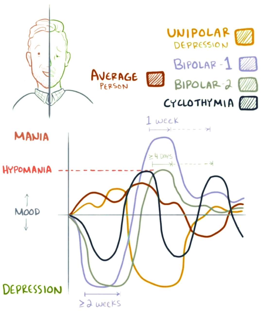 बाइपोलर डिसऑर्डर में व्यक्ति के मूड में अचानक और बार-बार बदलाव देखने को मिलता है। कभी वह बहुत ज्यादा खुश, ऊर्जावान और उत्साहित महसूस करता है, तो कभी अचानक गहरी उदासी, निराशा और थकान से घिर जाता है। यही मूड स्विंग इस बीमारी की सबसे बड़ी पहचान है। अगर समय रहते इसे समझा और इलाज नहीं किया गया, तो यह व्यक्ति के जीवन पर गहरा असर डाल सकता है।